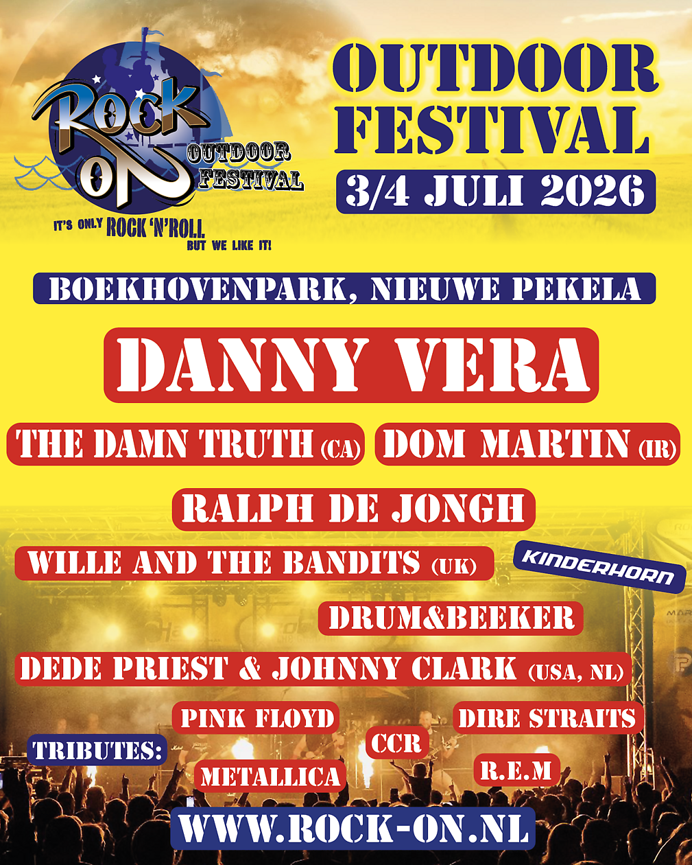 Het Rock-On Outdoor Festival, 2 dagen vol met de beste blues/rock muziek. Op 3 & 4 juli pakken we groots uit met nationale en internationale namen op het programma.